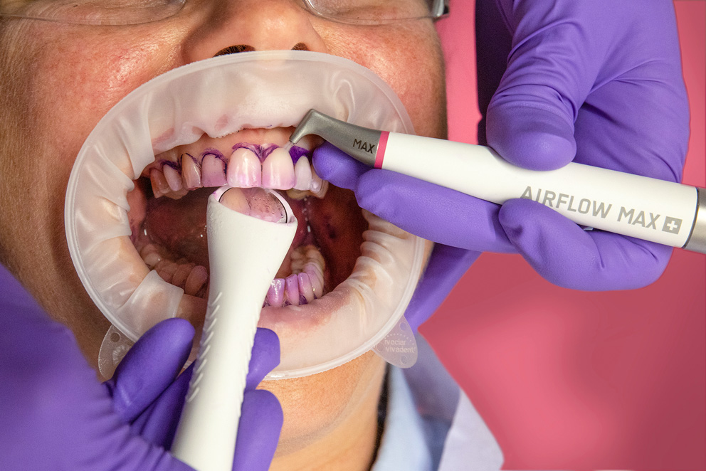 ЗАБЕЛЕЖКА: За да се постигне оптимален успех при управлението на супра- и субгингивалния биофилм, като същевременно се намали образуването на прах и аерозол, трябва да се научат и спазват указанията за правилното прилагане на AIRFLOW и техниката за аспирация. Новоразработеният AIRFLOW® Max със своя ламинарен поток генерира още по-малко аерозоли.