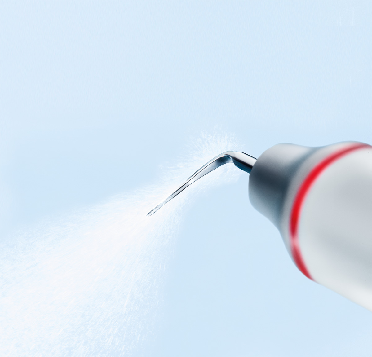 - Първично премахване на биофилма с прах AIRFLOW®/PLUS (минимално инвазивен).