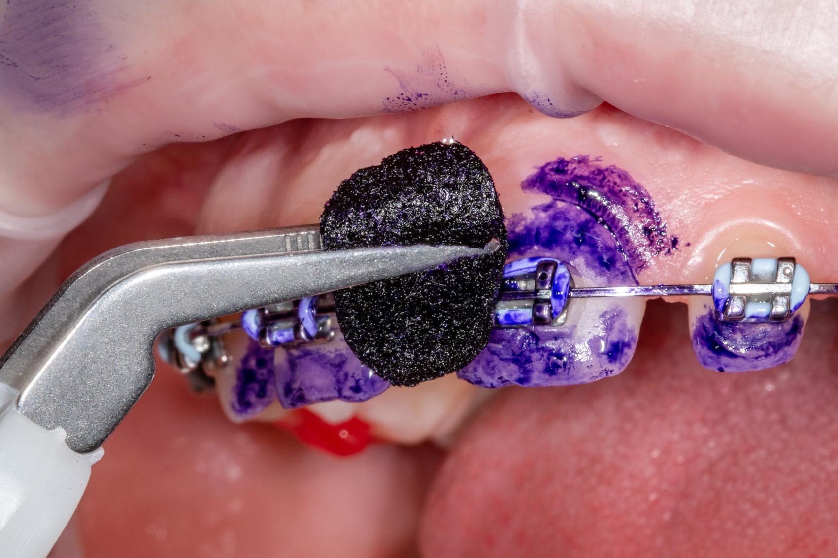 ЗАБЕЛЕЖКА: Дори висококвалифициран професионалист пропуска три пъти повече супрагингивален биофилм без разкриване. (8) Това е доказано и в гореспоменатото проучване, проведено от Stiftung Warentest. Освен това е възможно да се работи само по минимално инвазивен начин чрез прилагане на индикатор, т.е. отстраняване на супрагингивалния биофилм без почистване на емайла и дентина.