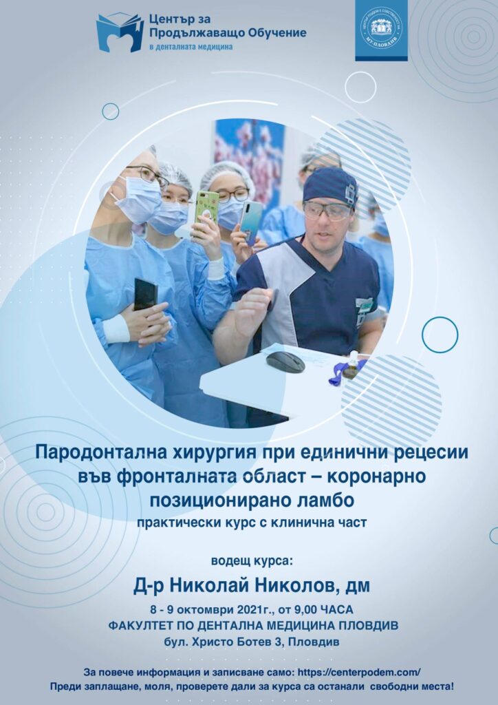 Пълна информация за курса “Пародонтална хирургия при единични рецесии във фронталната област – коронарно позиционирано ламбо можете да прочетете тук